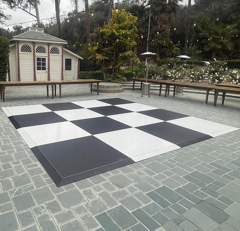 Our Black Matte Dance Floor features a sleek, modern design with a durable aluminum frame and hard surface finish. Each 4’ x 4’ panel connects seamlessly for a smooth, sturdy, and stylish surface—perfect for elevating any event with a touch of sophistication and reliable performance.