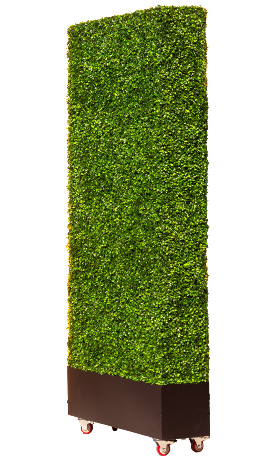 Our 4’x8’ Hedge Wall is made with lifelike faux ficus leaves, providing a lush and elegant backdrop for any event. It is available as a double-sided structure. Perfect for photo backdrops, event partitions, or decorative accents, this hedge wall adds a touch of greenery and sophistication to your space. Comes with wheels.